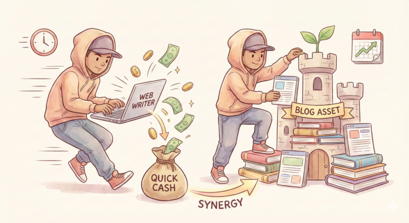 焦る必要はない。 ライターの「即金性」が精神的な安定を生み、そのメンタルがブログの「質の高い記事」を生む。