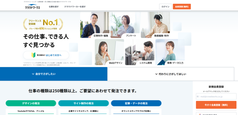 CrowdworksやLancersといった大手プラットフォームに無料登録してください。