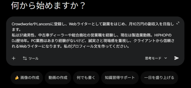 それでも迷ったときは、GeminiやChat GPTに「俺の経験をどうマネタイズすればいい?」と問いかければ、論理的な答えが即座に返ってくる。
